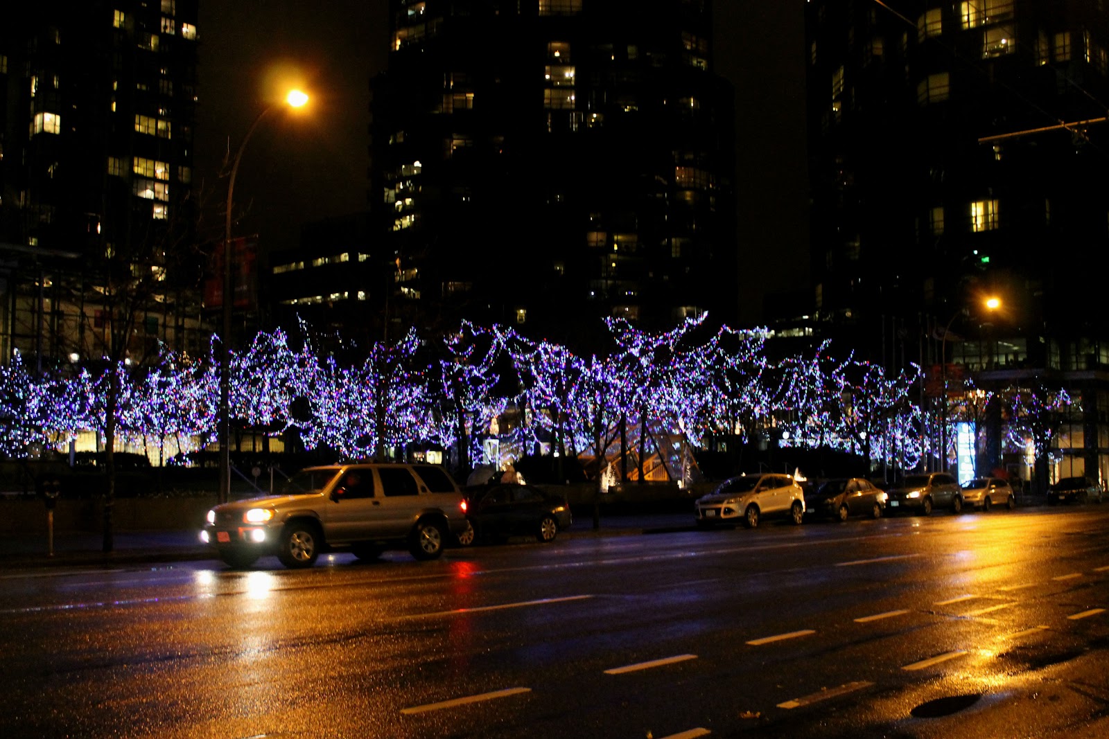 Christmassy lights at the Sheraton Wall Centre Hotel |